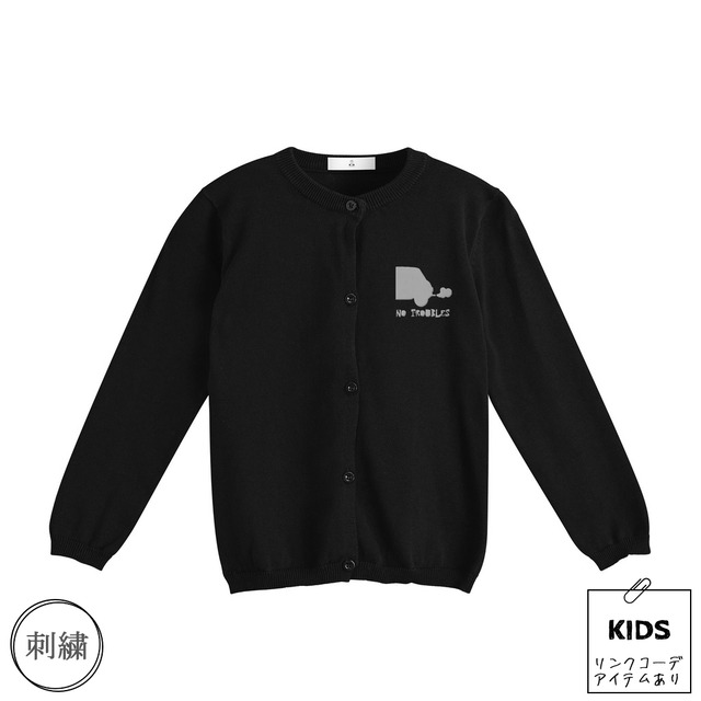 クラシックミニ デザイン「no troubles キッズカーディガン(ブラック)」
