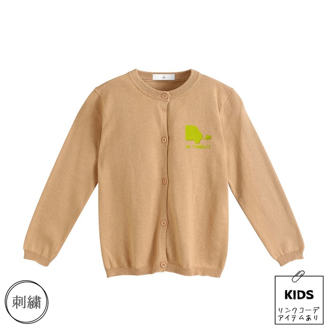 クラシックミニ デザイン「no troubles キッズカーディガン(ベージュ)]