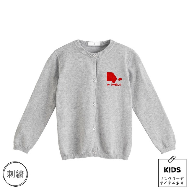 クラシックミニ デザイン「no troubles キッズカーディガン(グレー)」