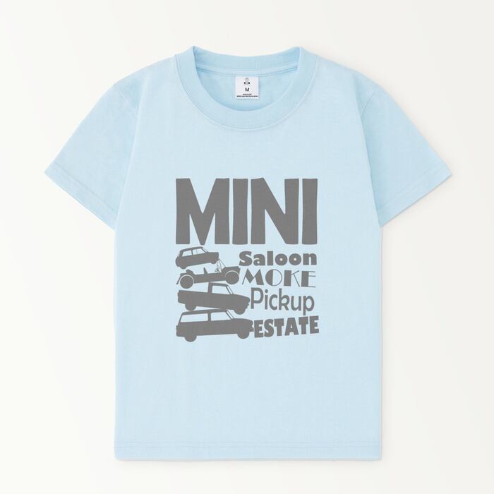 クラシックミニ好きの「ブレーメンのミニ隊 キッズTシャツ(パステルブルー)」