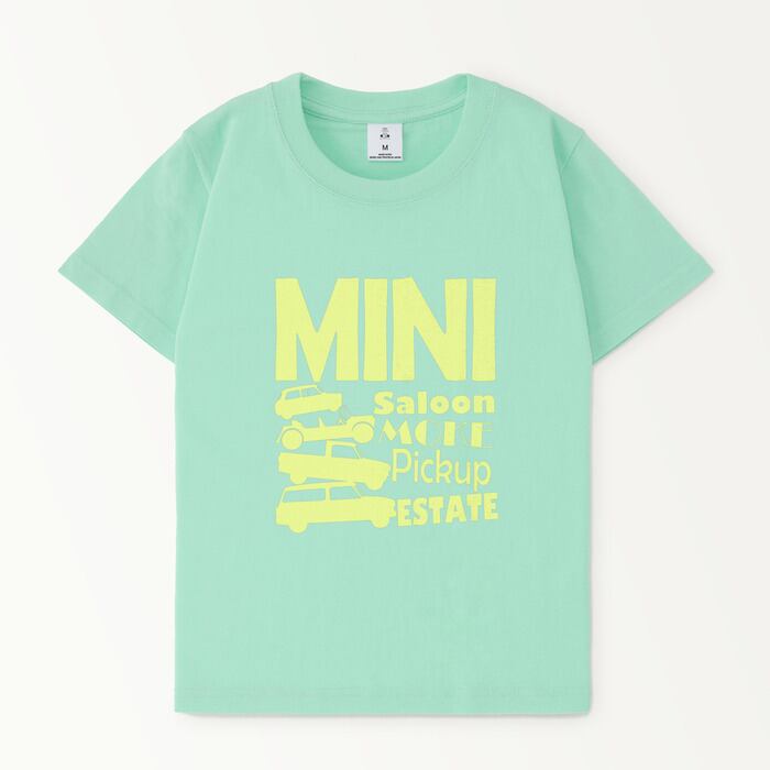 クラシックミニ好きの「ブレーメンのミニ隊 キッズTシャツ(パステルグリーン)」