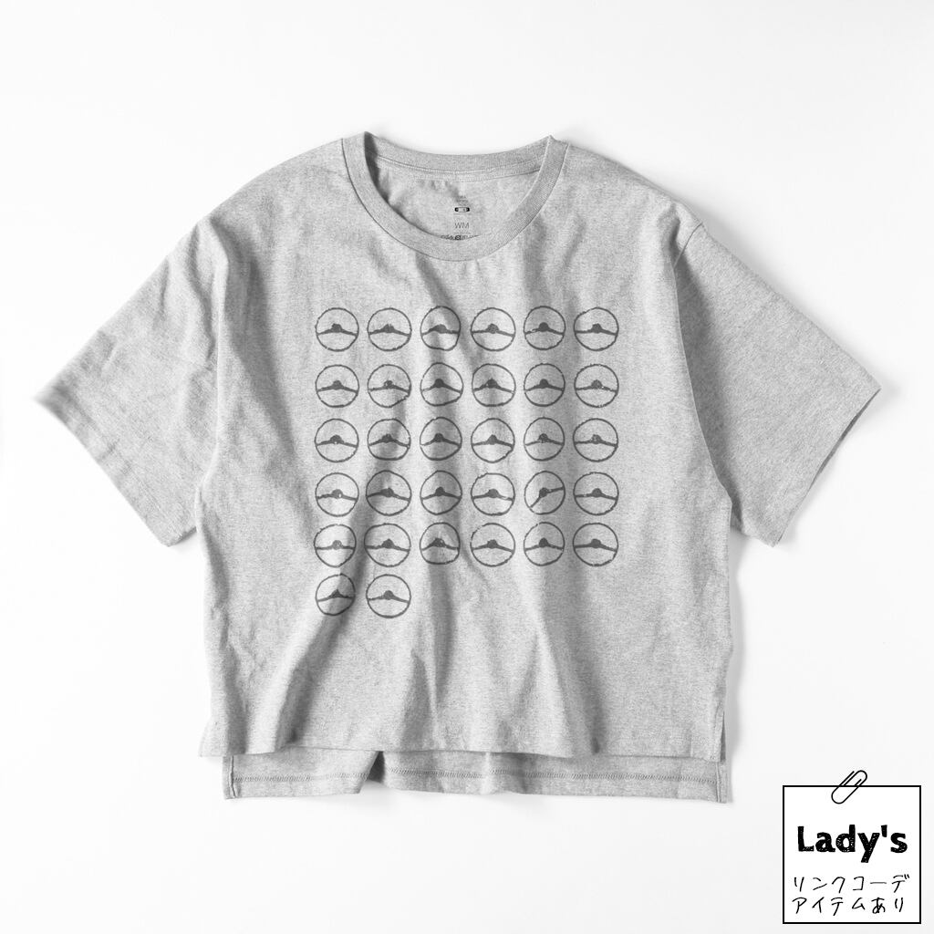 32個のステアリングがずらりと並んでいるから「32ステ Tシャツ」。