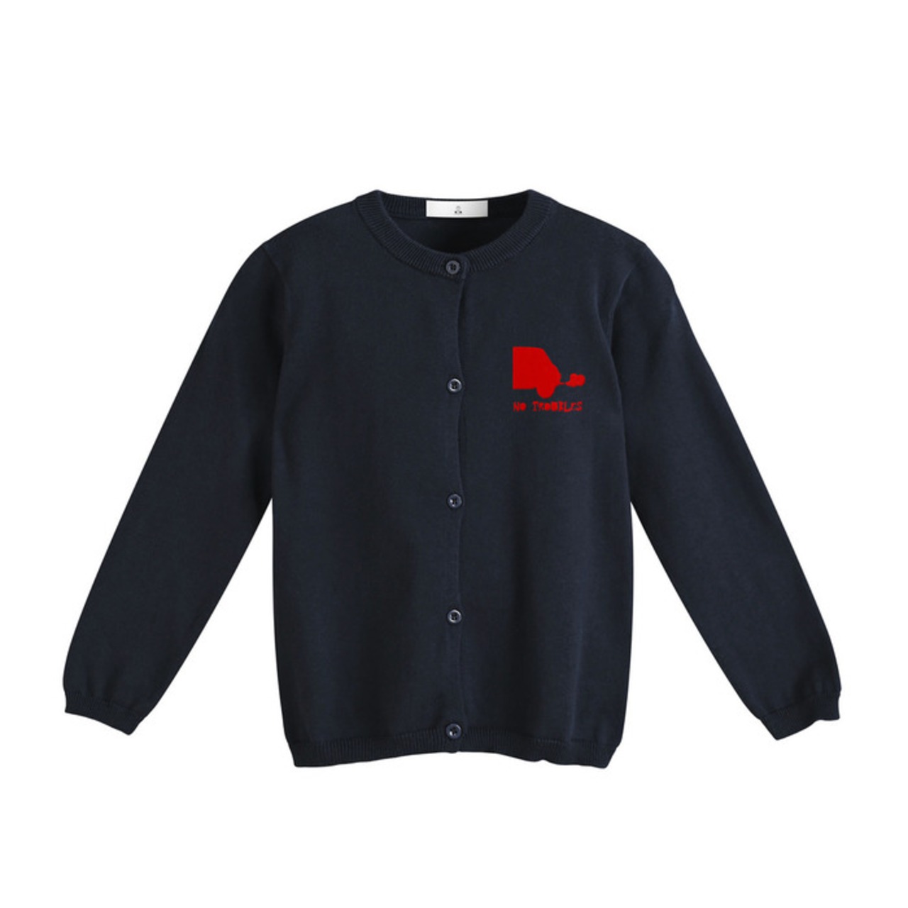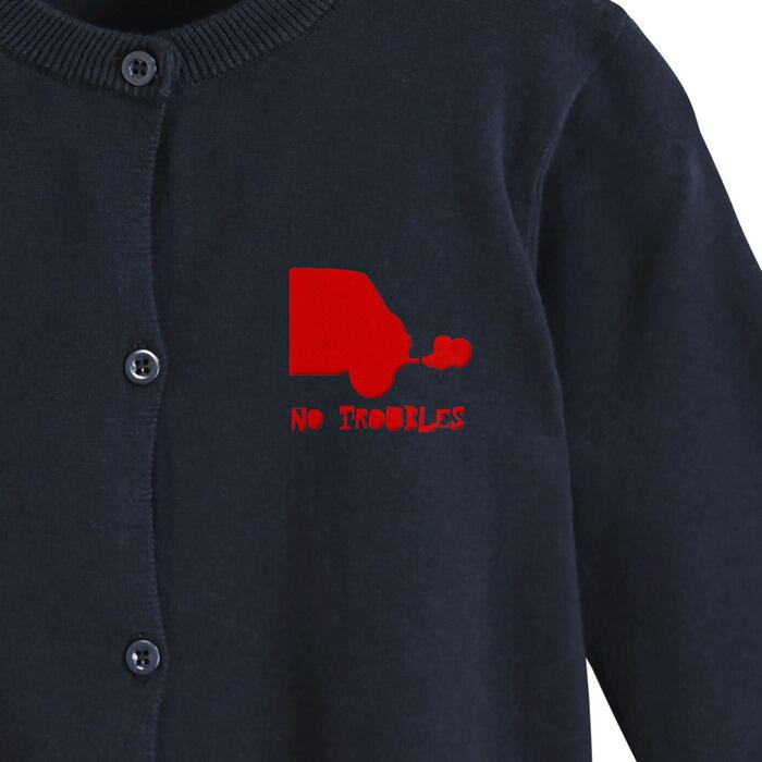 クラシックミニ デザイン「no troubles キッズカーディガン(ネイビー)]