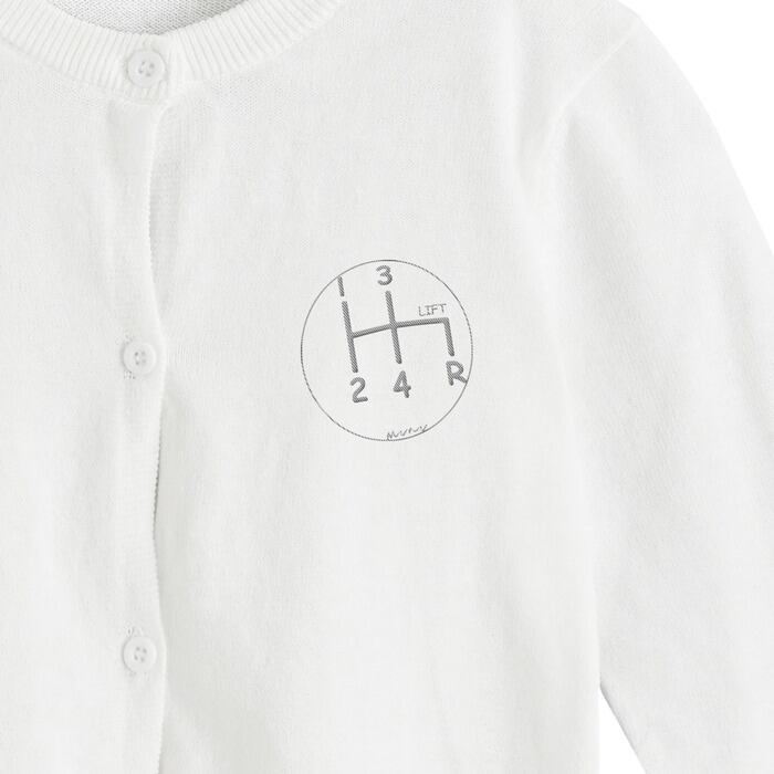 キッズ用カーディガンにクラシックミニのシフトノブを刺繍。