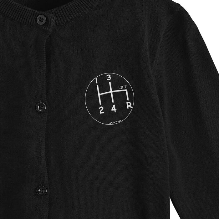 キッズ用カーディガンにクラシックミニのシフトノブを刺繍。