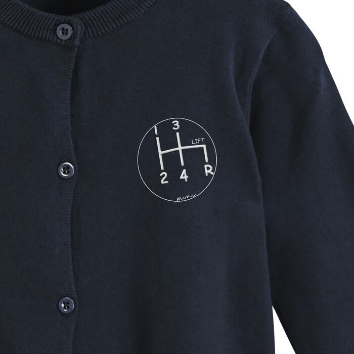 キッズ用カーディガンにクラシックミニのシフトノブを刺繍。