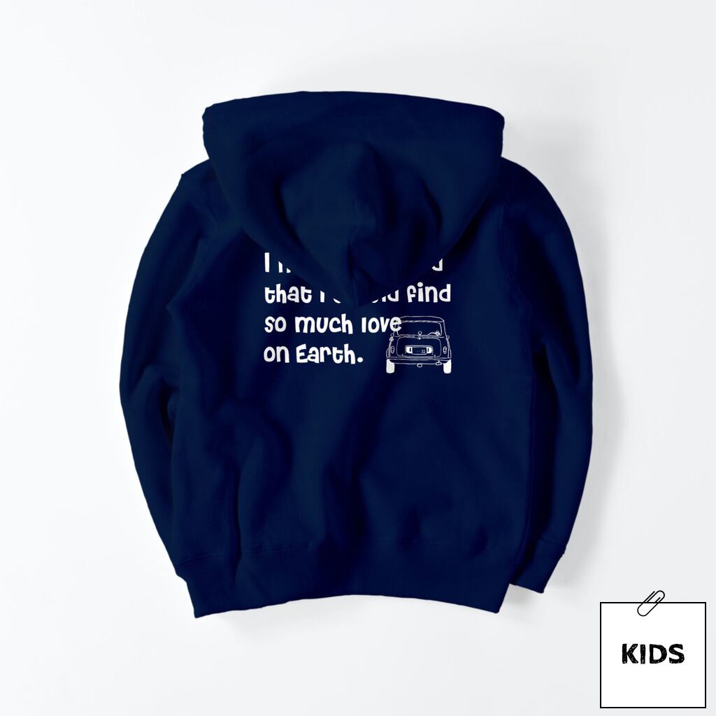 ビクトリア女王の愛のメッセージとクラシックミニがプリントされた「Vicky & Mini パーカー」。