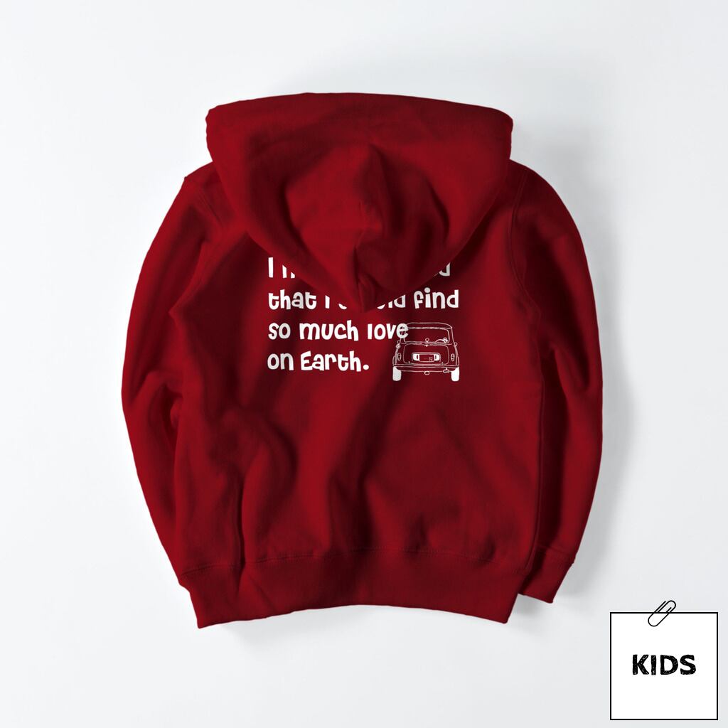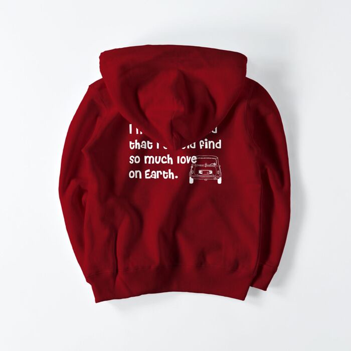 ビクトリア女王の愛のメッセージとクラシックミニがプリントされた「Vicky & Mini パーカー」。