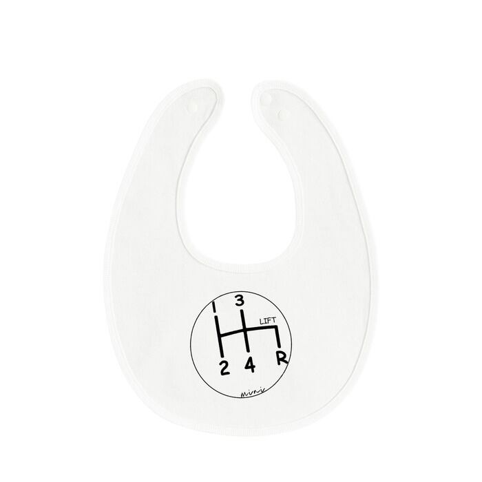 スタイ(スウェット/裏パイル)にクラシックミニのシフトノブをプリント。