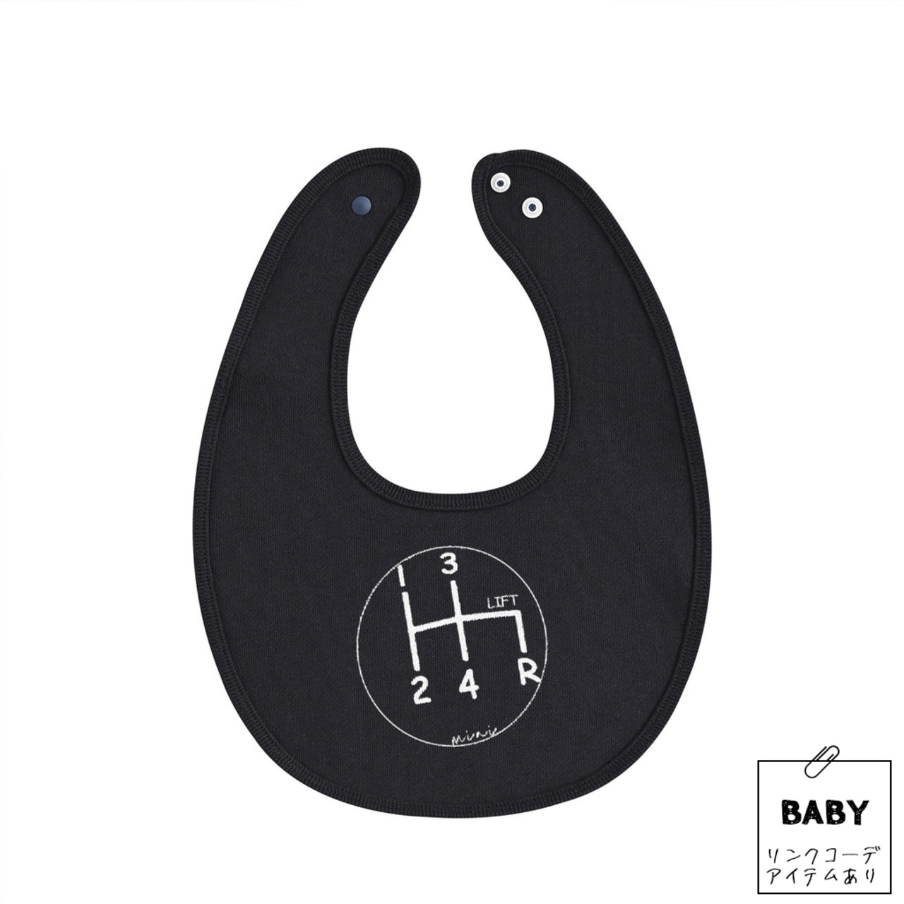 スタイ(スウェット/裏パイル)にクラシックミニのシフトノブをプリント。
