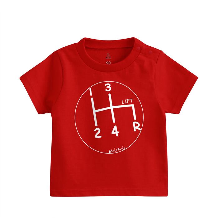 ベビーTシャツにクラシックミニのシフトノブをプリント。