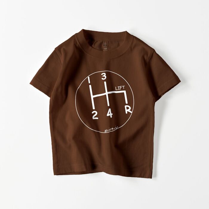 クラシックミニ好きに「miniシフト キッズTシャツ(ダークブラウン)」