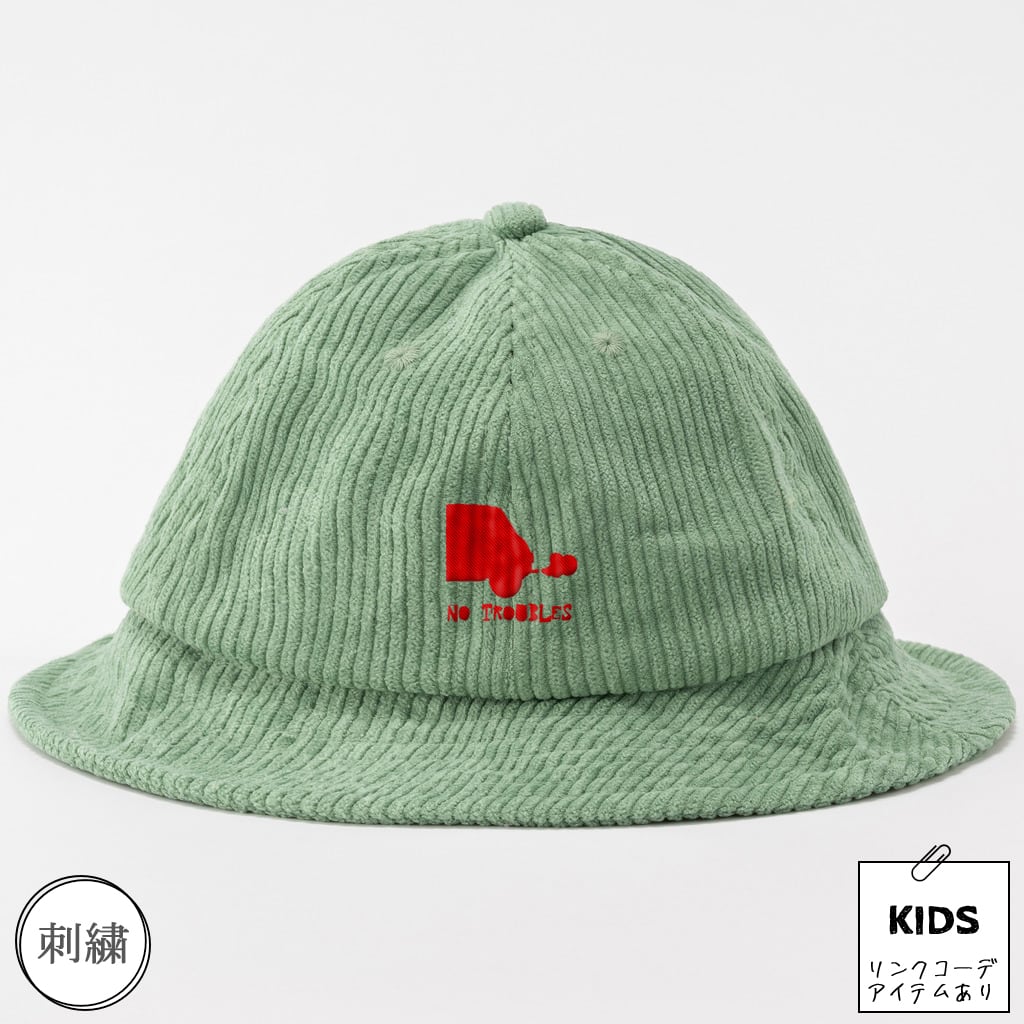 クラシックミニ デザイン「no troubles コーデュロイ キッズハット(グリーン)」