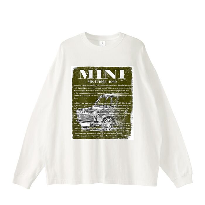 1967年に登場した「MkII」をモチーフにしたクラシックミニ愛好家必見のTシャツです。フロントグリルの洗練されたデザインや広く改良されたリアウインドウ、角型リアコンビランプなど、MkIIならではの特徴をデザインに落とし込みました。